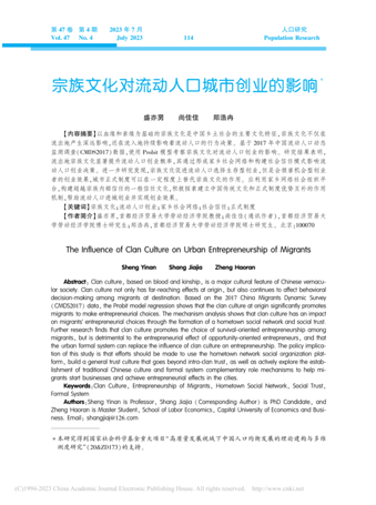 随着学院科研成果不断涌现,为了进一步营造良好科研氛围,激发师生科研热情,积极促进科研高质量发展,91论坛 将进行科研成果系列推介系列宣传报道。本期我们聚焦盛亦男老师作为第一作者所著论文“宗族文化对流动人口城市创业的影响”,该论文在国内权威期刊《人口研究》2023年第4期发表。