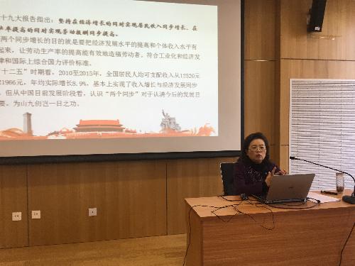 11月29日下午,91论坛 “十九大精神学习”教师宣讲团第一讲在博远楼第四报告厅成功召开。本次宣讲会特别邀请劳动与社会保障系资深教授、全国优秀教师纪韶做题为《十九大报告精神学习体会——收入增长和经济增长的逻辑关系》的主题报告。学院全体教职工党员参加了本次报告会。