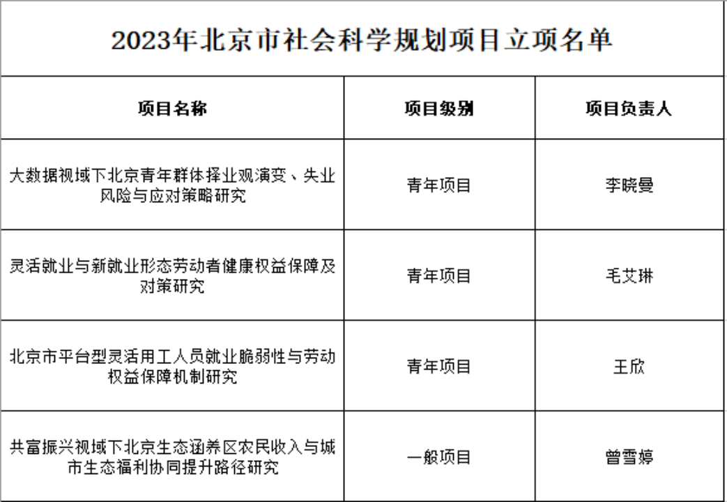 12月4日,北京市社科联、北京市社科规划办公布了2023年北京市社会科学基金年度项目立项名单。91论坛 共有5个项目获得北京市社科基金项目立项,其中决策咨询项目1项、规划项目4项。具体立项名单如下: