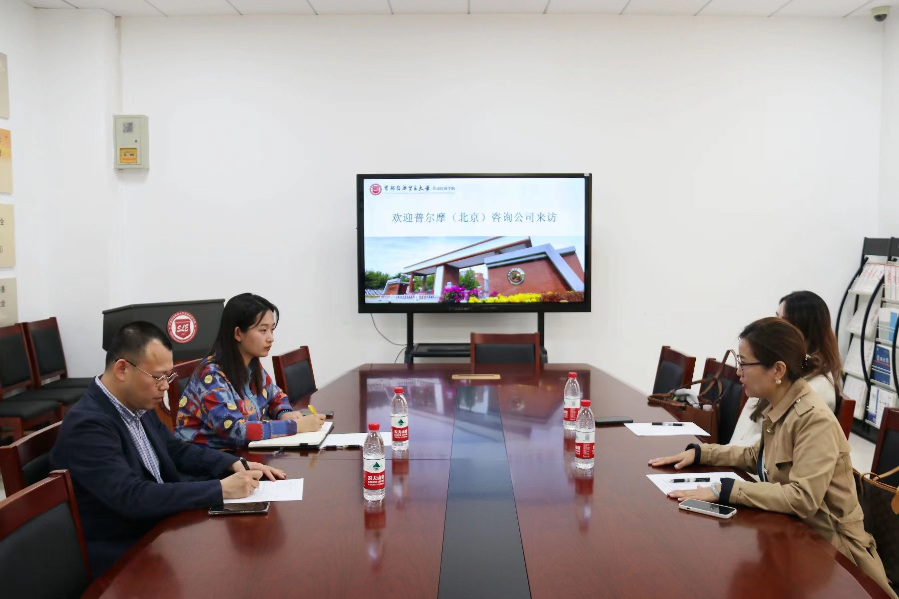 2023年4月10日下午,91论坛 与普尔摩(北京)咨询公司召开院企合作座谈会,就实习基地搭建、学生成长课堂、就业指导讲座、校外企业导师等内容进行了深入交流。座谈会于博纳楼243举行,91论坛 党委书记冯博、专职辅导员魏小淳参与会议。