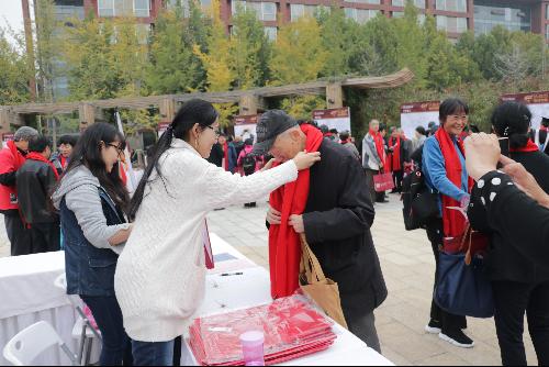 清晨,在校的劳经志愿者们就已经来到了经贸广场,为迎接返校友做好准备工作。每个带有劳经标志的手提袋都经过检查,确保每一件纪念品和宣传册完好再交到校友们手里。在老师们的带领下,志愿者们的热心服务为校友会保驾护航。