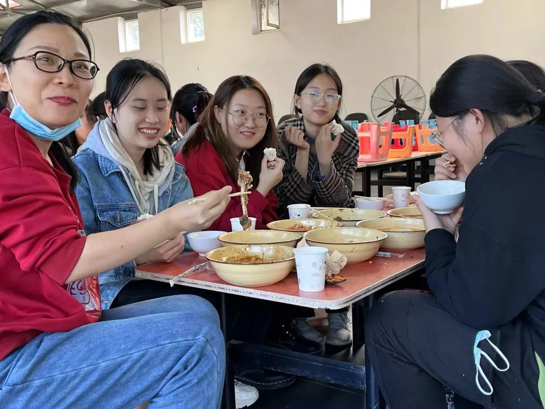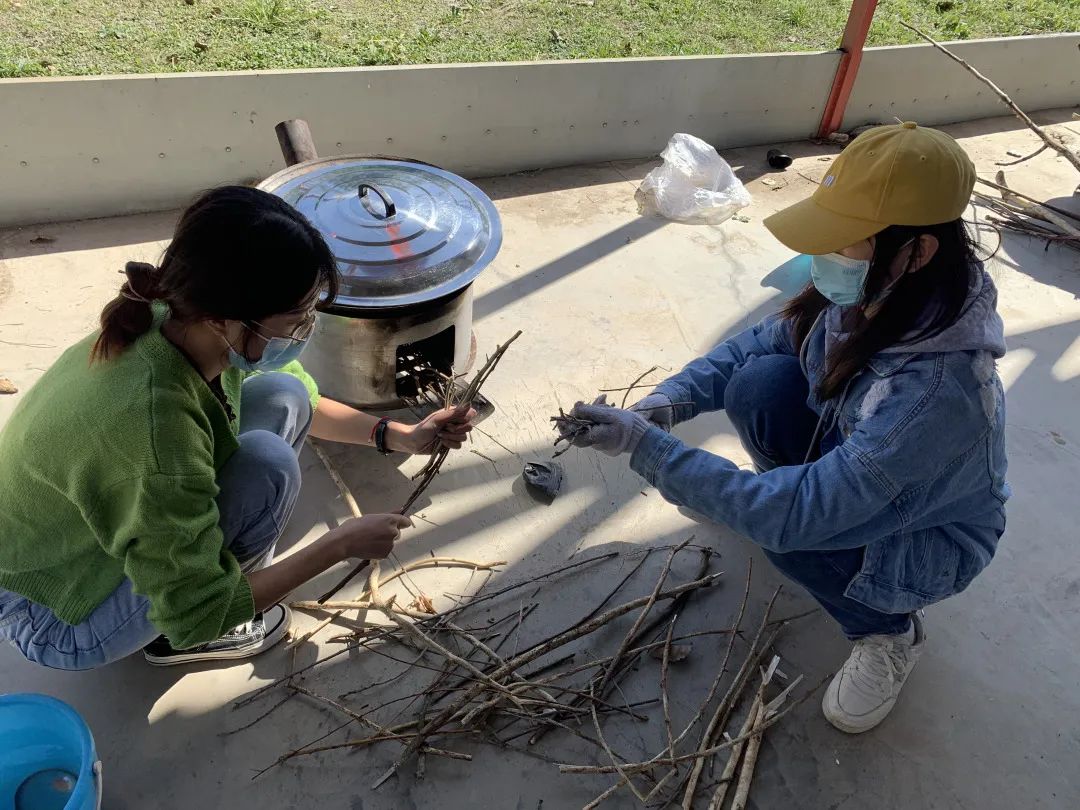 临近中午,同学们开始准备午餐,在前面团队协作经验的基础上,这次同学们很快进行了适当的分工,烧火、备菜、打水、传递……一切井然有序。同行教师也纷纷加入同学们的队伍中,进行指导和协助。经过师生通力合作,大家完成了近四十人的午餐。同学们和老师们围坐品尝,聚在一起点评每小组饭菜的卖相与口味,凝聚有自己辛苦劳动的饭菜显得格外的色香味俱全。做一顿饭不仅让学生们体会到了生活的烟火气,更感受到劳动的价值和意义。