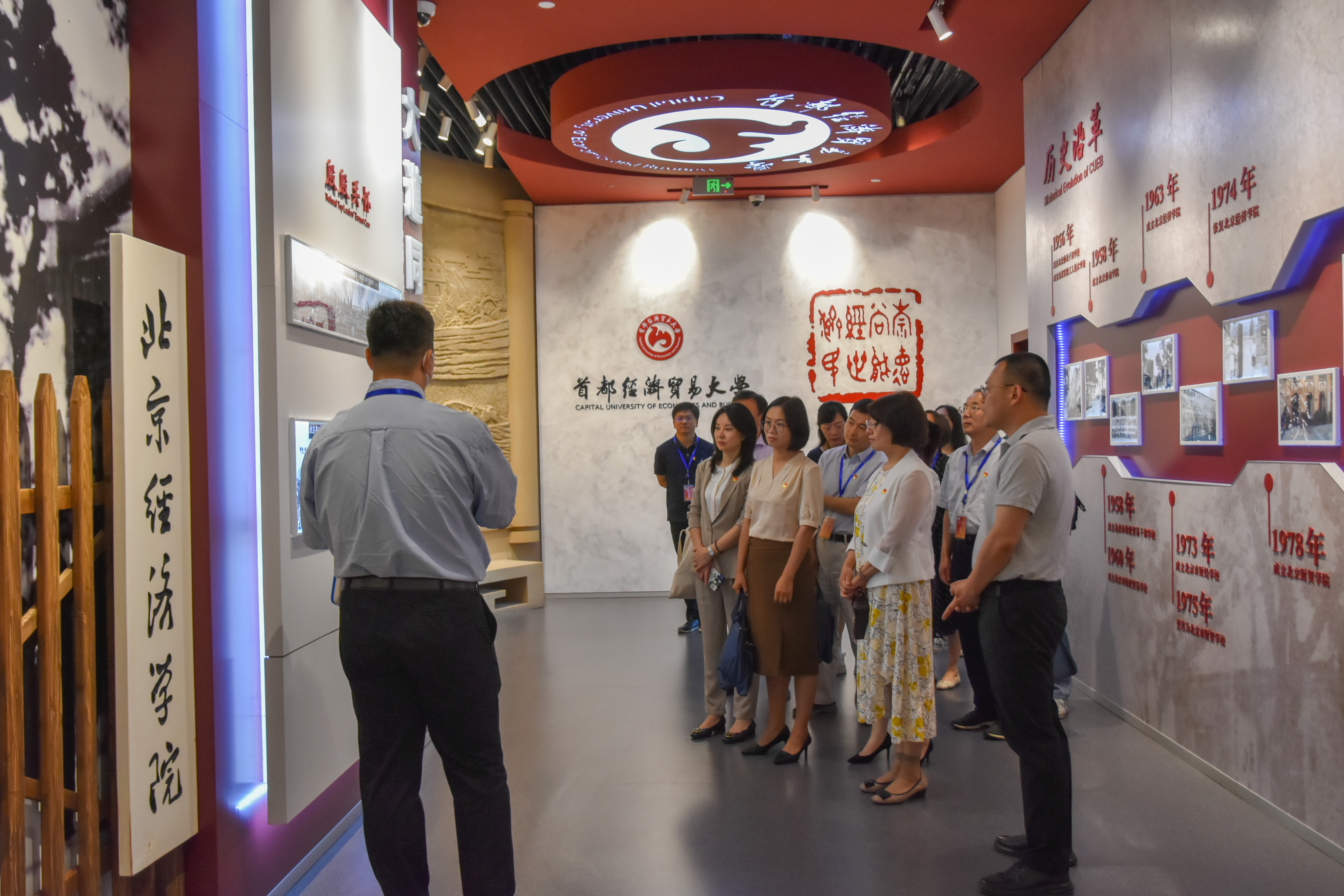 教育部直属机关党校第十五期处级党员干部理论进修班成员在座谈调研前参观了校史馆,了解91论坛 历史与建设情况。