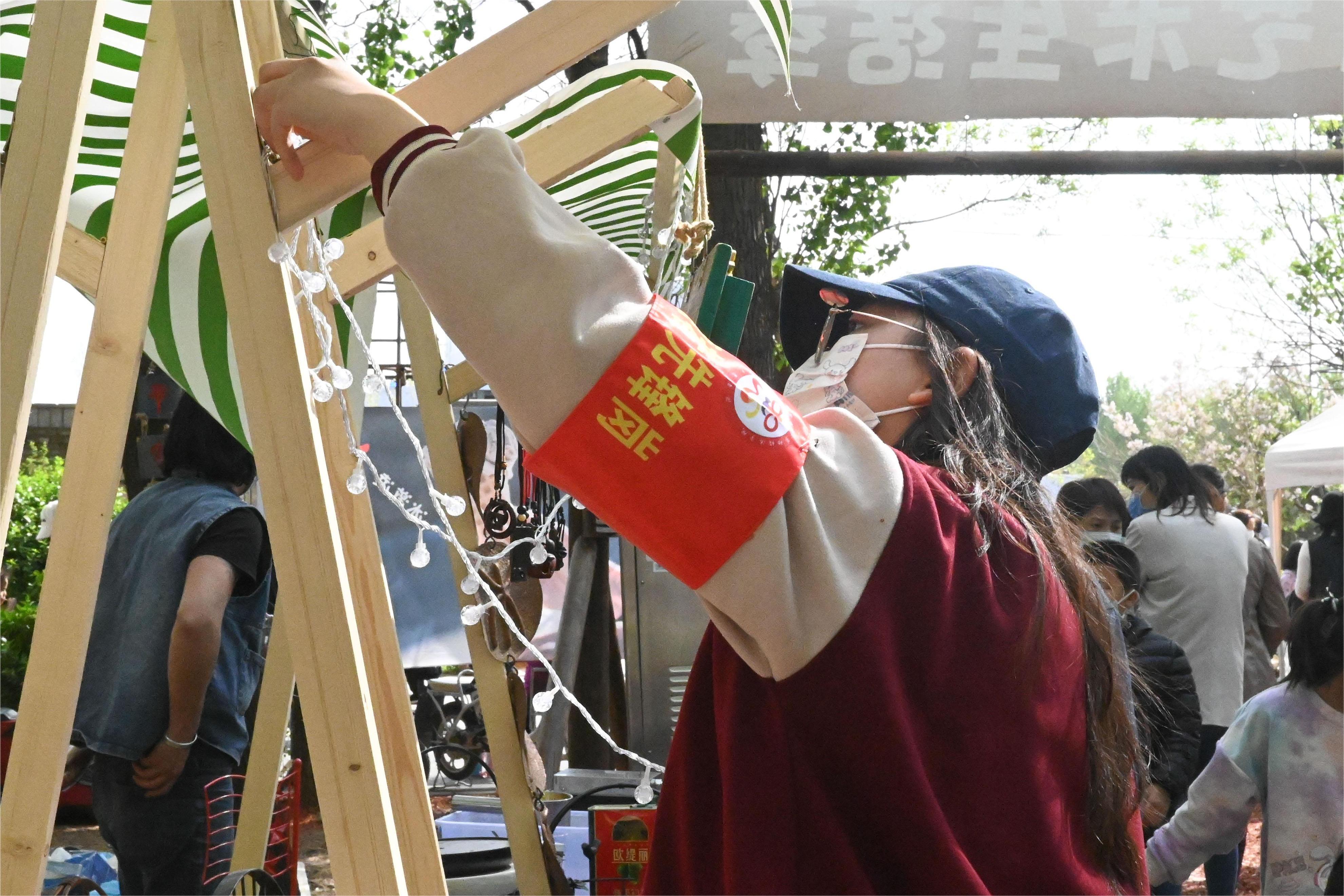 下苑村艺术市集上凝聚了52个摊位,其中80%是兴寿镇的驻村艺术家、设计师和手作人,用果蔬厨余堆肥制作成“颗粒花肥”、用虫咬和过熟的草莓染成的粉丝巾等,他们带着原创手作的艺术品、美食、服装、玩具、工艺品等,吸引了众多游客。91论坛 志愿者搭建起劳经专题摊位,通过一件件文创,向游客普及红色劳动历史,介绍专业社工在下苑村多元治理中发挥到作用,让劳动学科融入市集。同时劳经志愿者的身影出现在市集到各个角落,布置摊位,引导游客,悬挂夜灯,疏导交通,帮助行动不便的老人度过坑洼路段,协助市集负责人搬运场地物资。每一位志愿者犹如一个齿轮,通过自己的劳动助力市集整体运转有序。