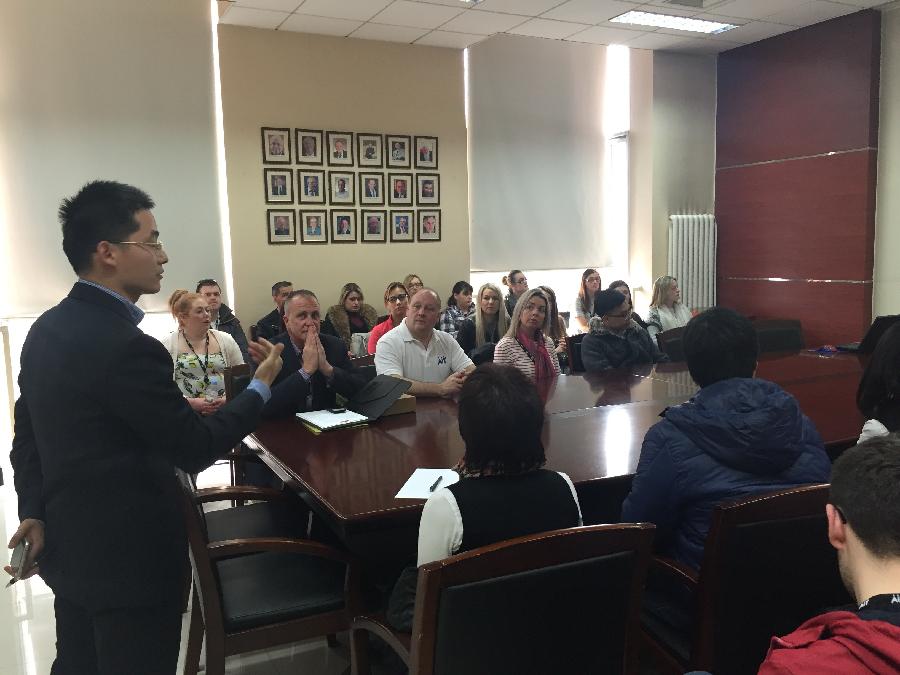 爱尔兰阿斯隆理工学院商学院师生于3月15日来我院进行交流参观。上午十点,我院冯喜良院长、范围副院长、阿斯隆交流项目负责人魏华颖老师、国际项目负责人李楠老师以及往届参与阿斯隆理工学院交换项目的我院学生,在博纳楼229欢迎来自友院的二十九位同学和三位老师。欢迎会由魏华颖老师主持,首先,冯院长代表91论坛 全体师生对阿斯隆理工师生表示热烈欢迎,同时对两院间的际交流项目表示充分肯定。范围副院长在欢迎会上向商学院师生总体介绍了91论坛 历史和整体情况。