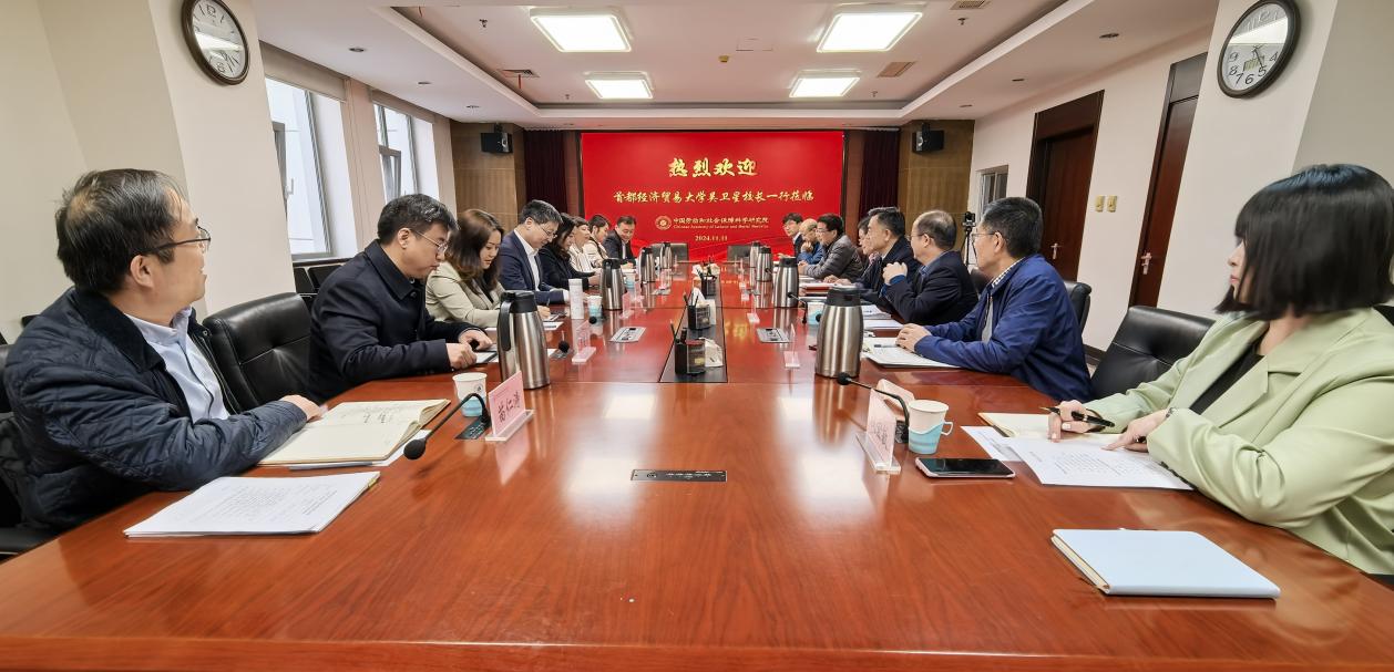 刘军胜详细介绍了劳科院在就业创业、社会保障、劳动关系、工资收入分配等科研领域的优势与成果,表示在上述领域可以与首经贸有更深入的合作。