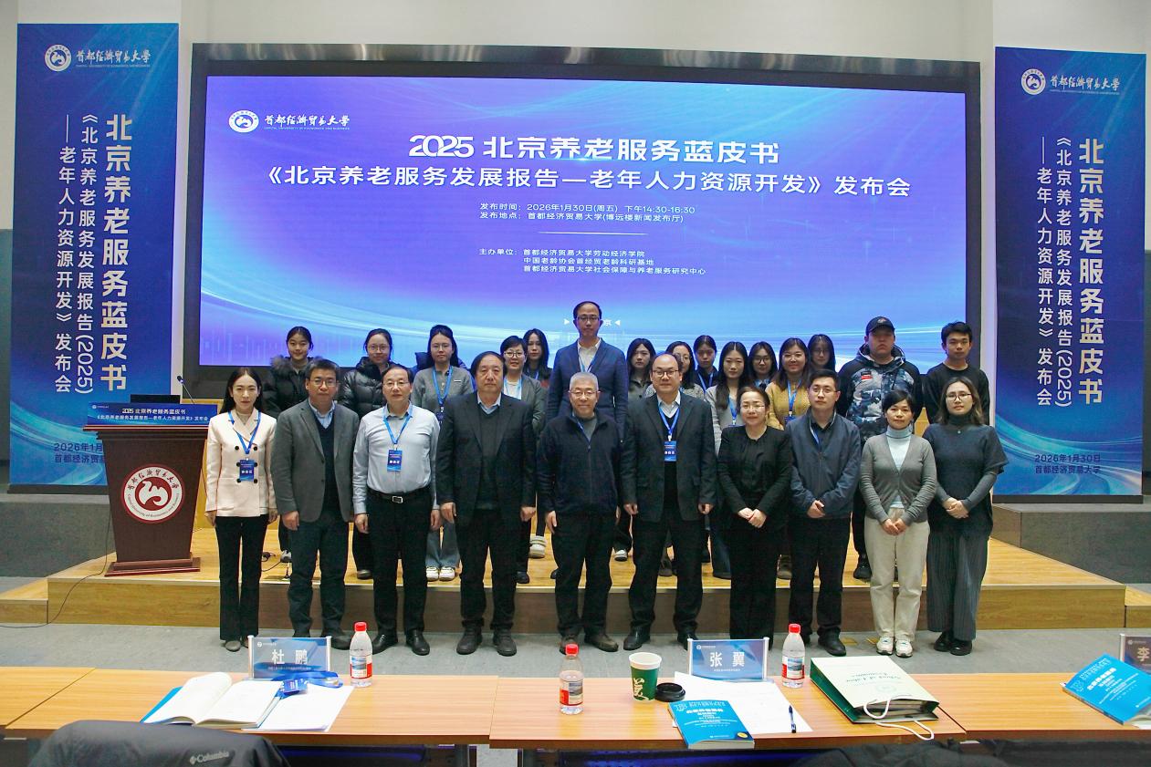 1月30日下午,积极应对人口老龄化与银发经济发展研讨会暨《北京养老服务蓝皮书(2025)》发布会在91论坛 举行。本次发布会由首经贸91论坛 、中国老龄协会首经贸老龄科研基地及首经贸社会保障与养老服务研究中心主办,聚焦老年人力资源开发与银发经济高质量发展,吸引了来自学界、政府部门、研究机构、媒体及校内师生代表参与。发布会由首经贸91论坛 副教授、中国老龄协会首经贸老龄科研基地副主任王永梅主持。