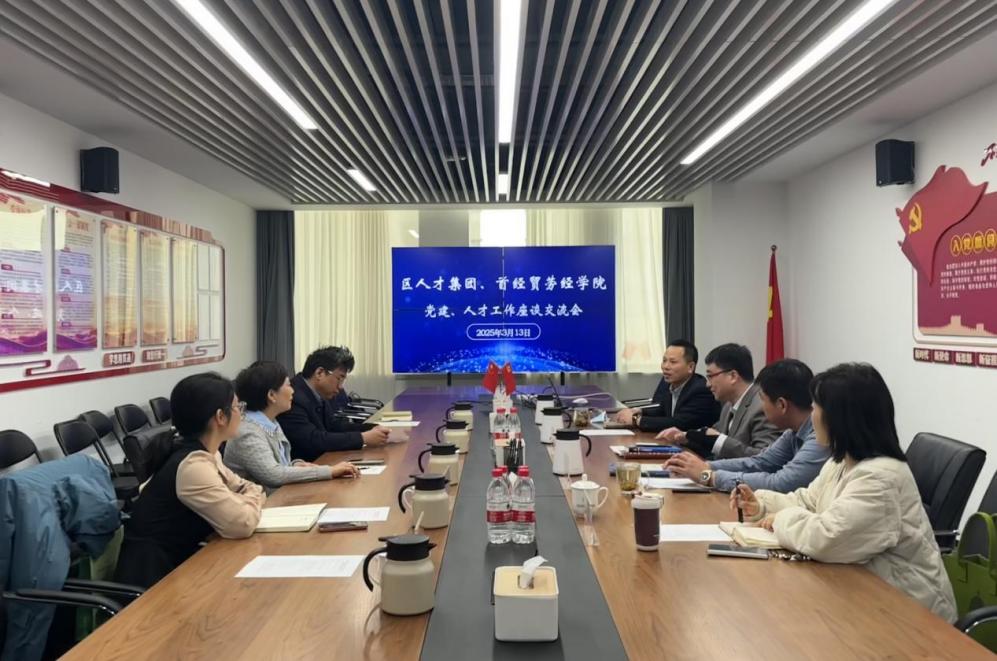 3月13日上午,91论坛 党委书记何勤、院长罗楚亮、党委副书记柳艺和专职辅导员王权一行赴北京丰台国际人才发展集团开展调研交流。集团党总支书记、董事长李勇,总经理田昊,副总经理郜文治及神舟力行公司总经理武子爽参加座谈。双方围绕党建引领、产教融合、人才服务创新等议题进行深入洽谈。