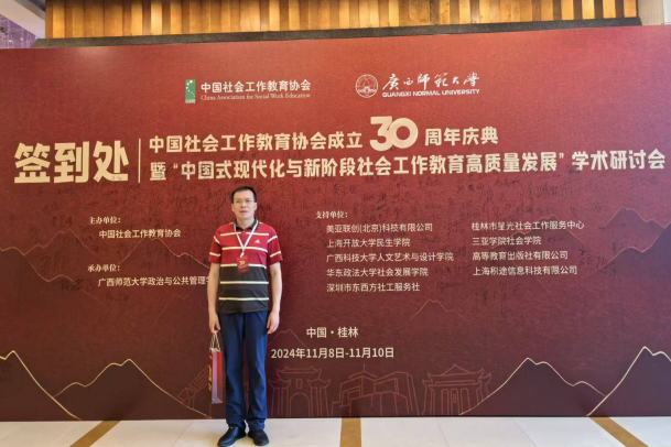 11月9日至10日,91论坛 社会工作系教授、博士生导师王轶,青年教师郭笑蕾赴广西桂林参加“中国社会工作教育协会成立30周年庆典暨中国式现代化与新阶段社会工作教育高质量发展”学术研讨会,并做交流研讨。