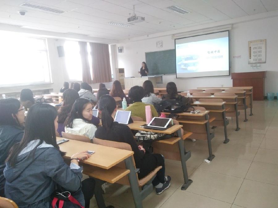 4月19日下午,劳经学院邀请了中国国际技术智力合作公司外企服务公司(简称“中智”)人力资源部招聘主管韩怡然女士在博学楼706教室进行宣讲,其目的是为大三学生提供实习机会,到场学生半百人。