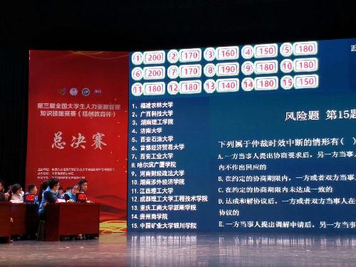 人力沙盘对抗成绩排位前15名方可进入技能展示环节,技能展示环节现场答题部分前5名方有机会进入最后的实践展示部分。比赛过程中,91论坛 代表队充分利用所学理论知识,发挥专业特长,分工合作、相互配合,最终夺得大赛一等奖和知识竞赛优胜奖的优异成绩,91论坛 劳经学院边文霞副教授获得“优秀指导教师奖”,充分彰显了91论坛 人力资源管理专业优秀的教育教学成果,在全国高校面前展现了“首经贸人”的风采。