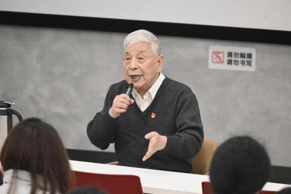 观看纪录片后,学院党委邀请校离退休人员党委离休党支部书记李召朝同志以“践行党的宗旨,做合格党员”为题讲授专题党课。李召朝同志是抗美援朝战士、91论坛 离休教师,曾随着志愿军第47军141师进入朝鲜,2020年获“入朝作战70周年纪念章”。他结合自己湘西剿匪、抗美援朝的真实革命经历,沿着“如何成为一名合格的共产党员”的主要脉络,带领学员从故事中体悟党的初心与信念。他希望同学们坚定理想信念,扛起历史责任。