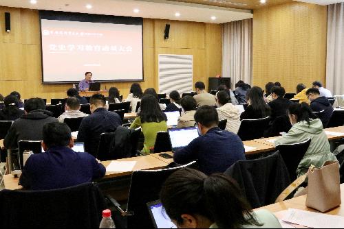 王明会围绕“为什么学”“学什么”“怎么学”和“如何学得好”四个方面对学院党史学习教育活动进行了全面部署。他提到,开展党史学习教育是牢记初心使命、推进中华民族伟大复兴的必然要求;是坚定信仰信念、在新时代坚持和发展中国特色社会主义的必然要求;是推进党的自我革命、永葆党的生机活力的必然要求。开展党史学习教育,有利于从百年党史中汲取经验智慧和前进力量,全面加快推进学校学院高质量发展。