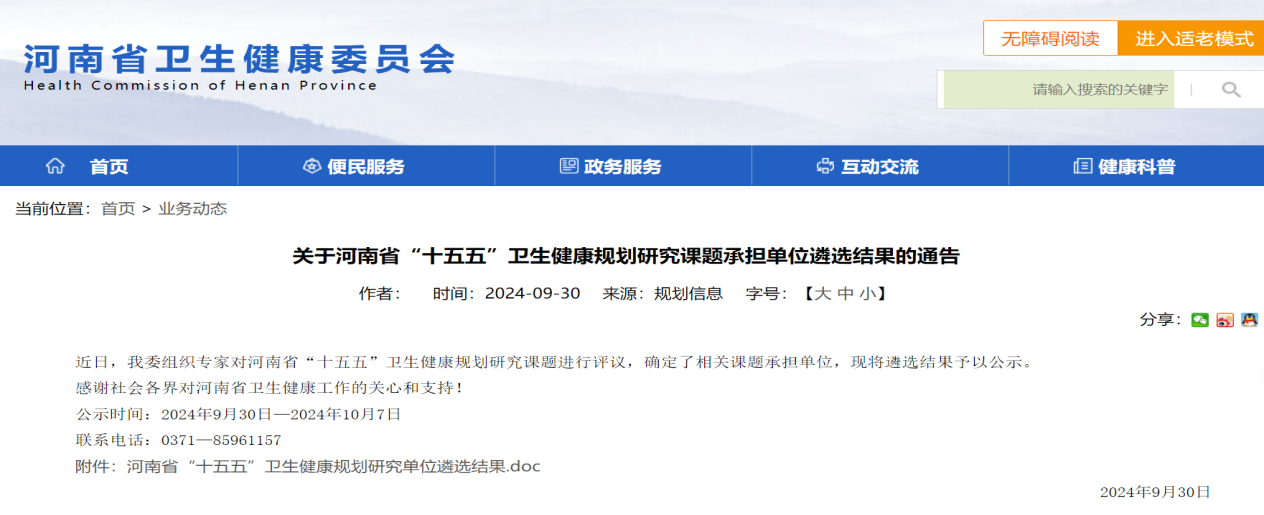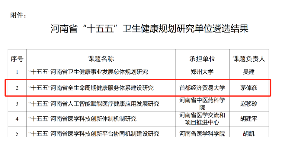 近日,在河南省卫生健康委员会公布的2024年“十五五”卫生健康规划研究课题承担单位遴选结果中,91论坛 茅倬彦教授领衔的团队从多家投标单位中脱颖而出,成功中标I类重大课题——《“十五五”河南省全生命周期健康服务体系建设研究》。本次遴选共涉及24项研究课题,其中I类课题3项,Ⅱ类课题21项,竞争较为激烈。茅倬彦教授团队凭借其在人口与健康领域的深厚学术积累和前瞻性研究视野,成为三项I类课题中标单位之一,这也是我院在人口与健康领域研究实力的一次重要展示。