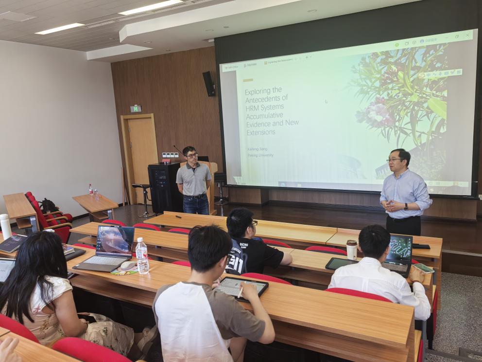为推动科研创新,营造学术氛围,6月5日下午,91论坛 在博远楼3号报告厅举办主题为“人力资源管理系统的前因研究——基于利益相关者生态视角的新探索”学术讲座。本次讲座特邀北京大学光华管理学院组织与战略管理系讲席教授姜铠丰主讲,聚焦人力资源管理领域的前沿动态与跨学科研究视角。91论坛 党委书记何勤出席讲座,讲座由副院长苗仁涛主持。