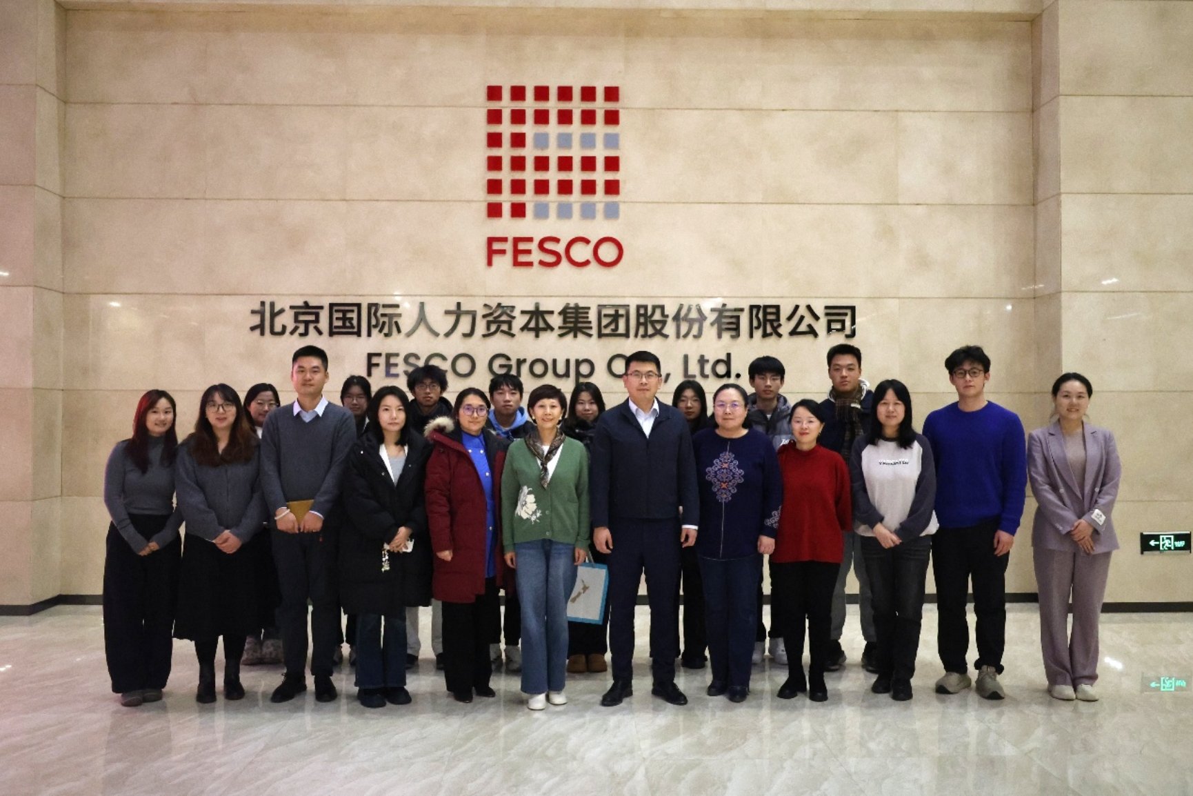 为深入学习贯彻党的二十届四中全会精神,发挥党建引领事业发展作用,深化校企合作、拓宽学生行业视野,12月15日,91论坛 组织师生代表赴北京国际人力资本集团股份有限公司(FESCO)开展“劳企未来”交流活动。北京外企国际教育咨询有限公司党支部书记、董事、总经理曹志远,91论坛 党委书记何勤出席交流会。本次活动围绕党建引领、产教融合、人才培养、国际就业等议题展开座谈,旨在探讨党建引领专业发展模式,搭建人才培养协同体系,助力学生实习实践与职业发展。