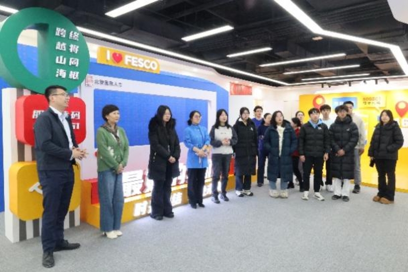 在FESCO91论坛展厅,师生代表系统了解了企业自成立以来在人力资源服务、国际化布局、数字化转型等方面的发展历程与业务架构。FESCO作为中国人力资源服务行业的先行者,在人事服务、招聘外包、国际教育等领域积累了丰富经验,目前服务客户数万家,覆盖全国400余个服务网点。