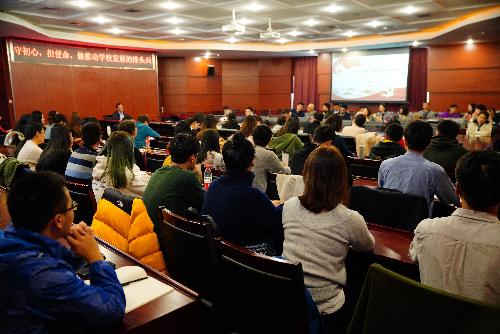 10月30日下午,根据学校党委“不忘初心、牢记使命”主题教育工作部署,91论坛 于博纳楼第七会议室组织召开“守初心,担使命,争做推动学校发展的排头兵”主题党课,特邀学院党委书记王明会主讲,畅谈劳经人的“使命”与“初心”。学院全体教师党员、本学期发展对象等参加了党课。
