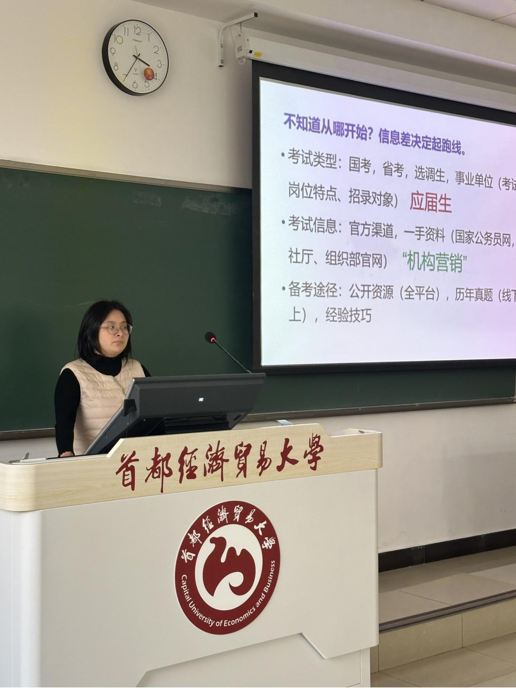 黄莹以“考公经验分享”为核心,从考公岗位选择、笔试备考方法、面试技巧等方面进行了细致讲解,结合社保专业的考公优势,分析了适合的岗位方向,还分享了备考过程中的心态调整方法,为有意向考公的同学提供了全面的参考。