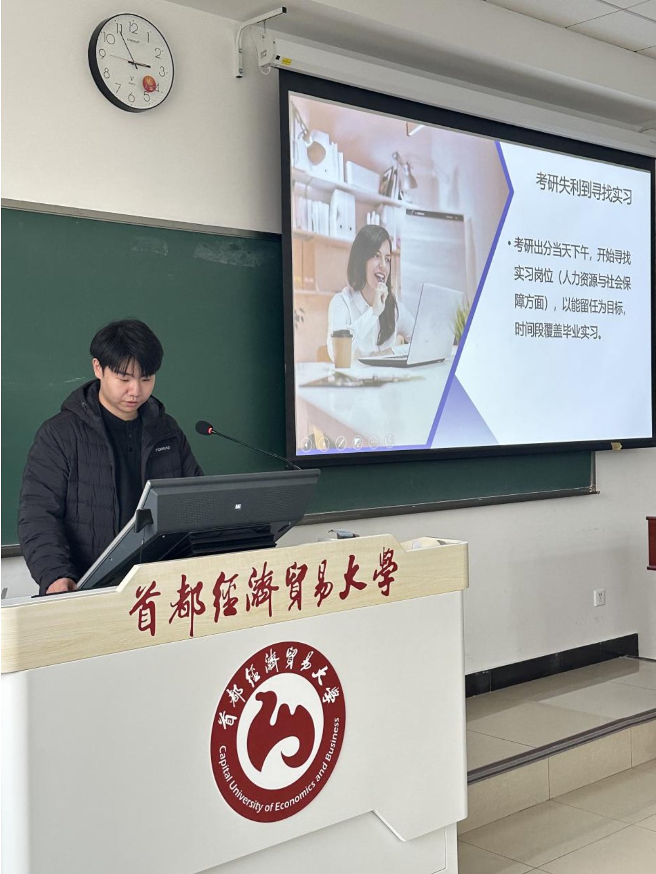 马莱以“考研不是唯一的赛道,此路不通并非是绝境”为主题,分享了自己从考研备考转向求职的经历,分析了就业市场的多元机会,讲解了事业单位的报考流程、备考要点,鼓励同学们根据自身情况灵活调整发展方向,不要局限于单一的升学路径。