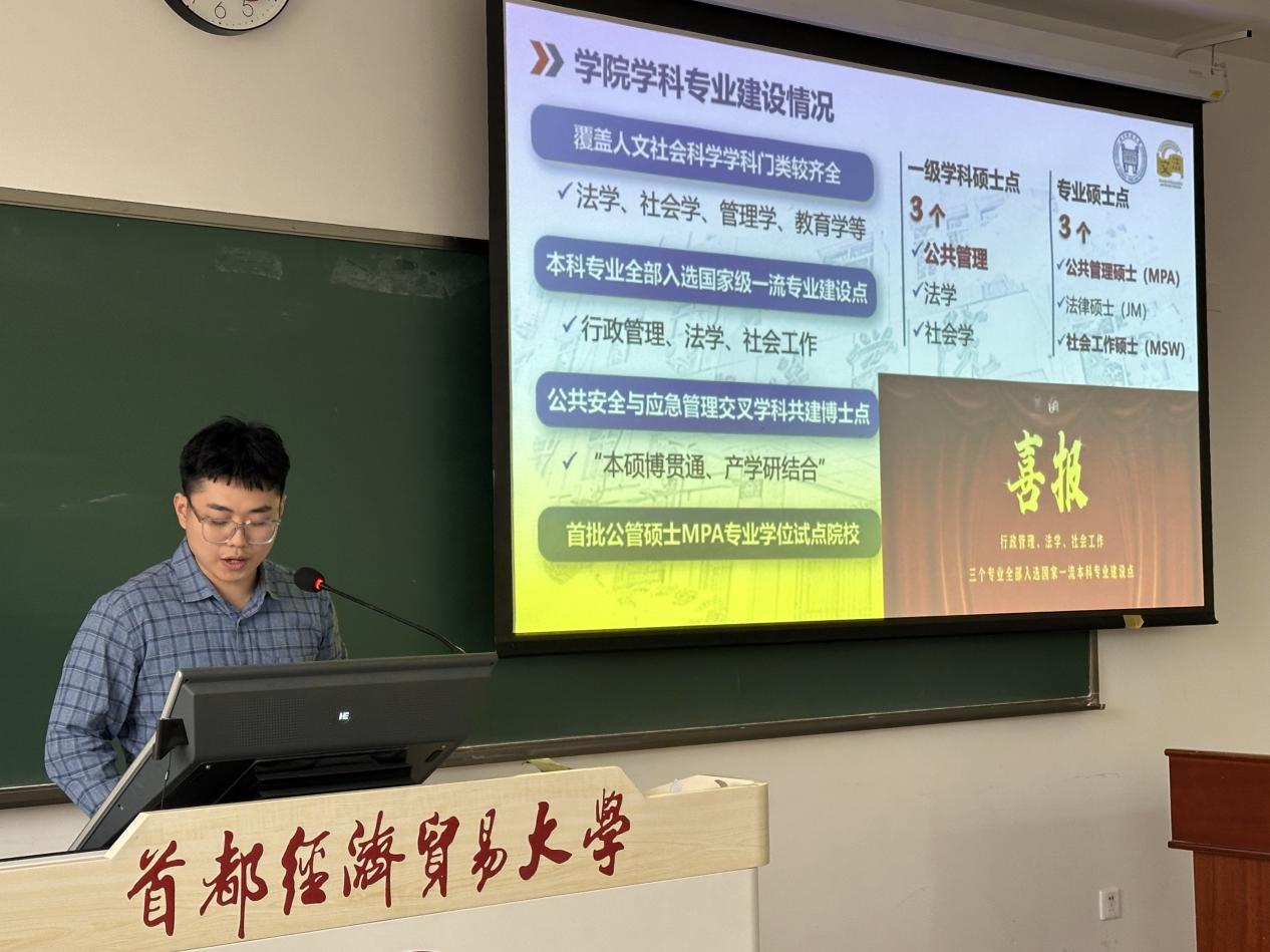 王铖阳以“社会工作专业考研分享”为主题,从院校选择、专业课复习规划、公共课备考技巧等方面展开讲解,重点分析了跨专业考研的重难点,还结合自身备考经历,分享了如何平衡复习节奏、应对备考焦虑的方法,为有意向考研的同学梳理了清晰的备考思路。