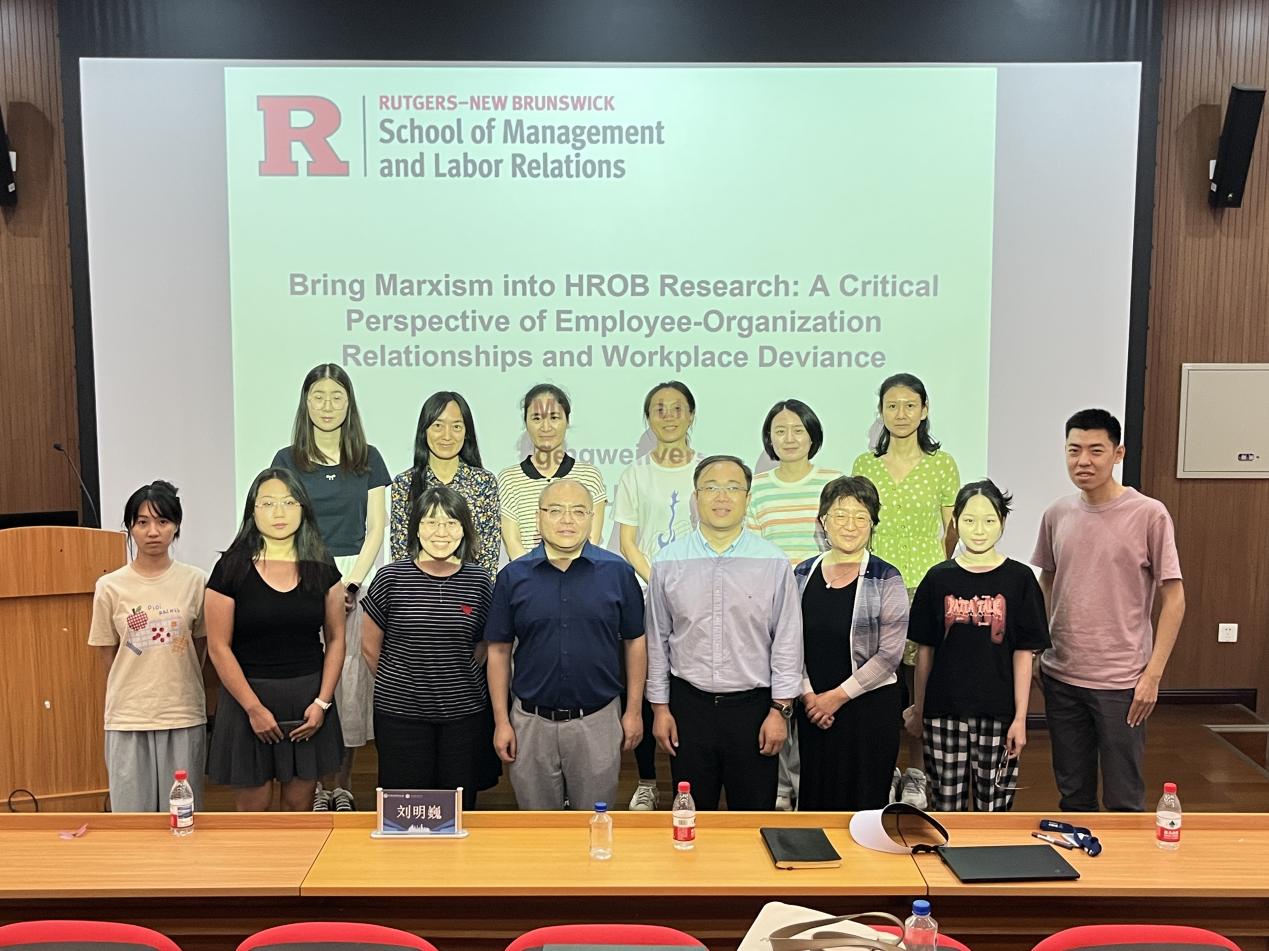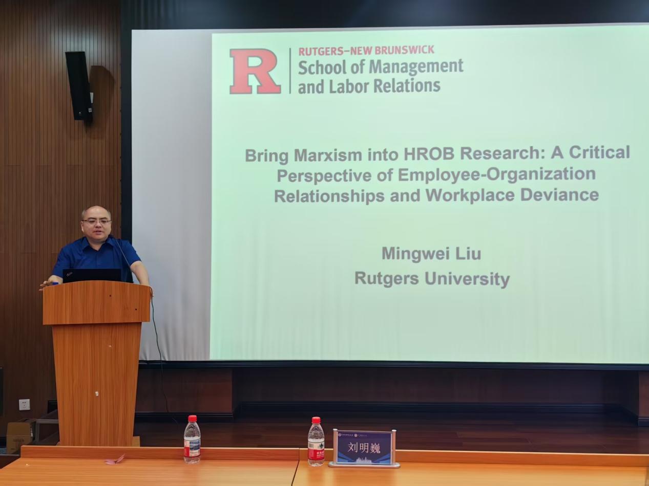 为进一步赋能教师和研究生学术能力,打造良好科研氛围,7月2日下午,91论坛 在博远楼3号报告厅举办第18期“劳经Seminar”,主题为“把马克思主义带入人力资源和组织行为研究:批判视角下的雇佣关系和职场偏离行为”的学术讲座。本次讲座特邀美国罗格斯大学管理与劳动关系学院终身正教授、副院长刘明巍主讲,聚焦人力资源和组织行为学前沿动态和创新研究视角。讲座由91论坛 副院长苗仁涛主持。