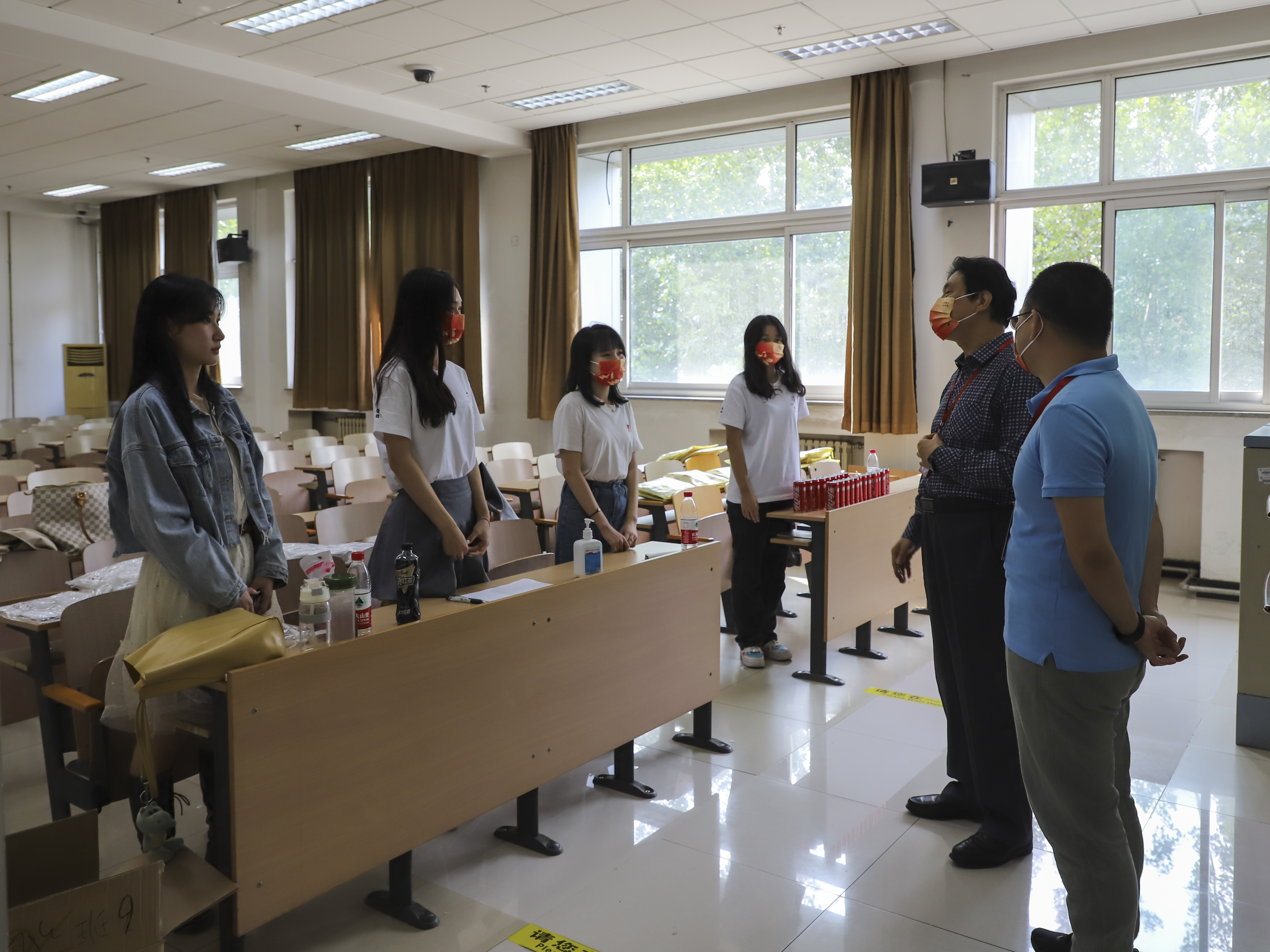校党委书记韩宪洲,校长付志峰等校领导班子到劳经学院新生报到处询问报到情况,并提出相关指导。