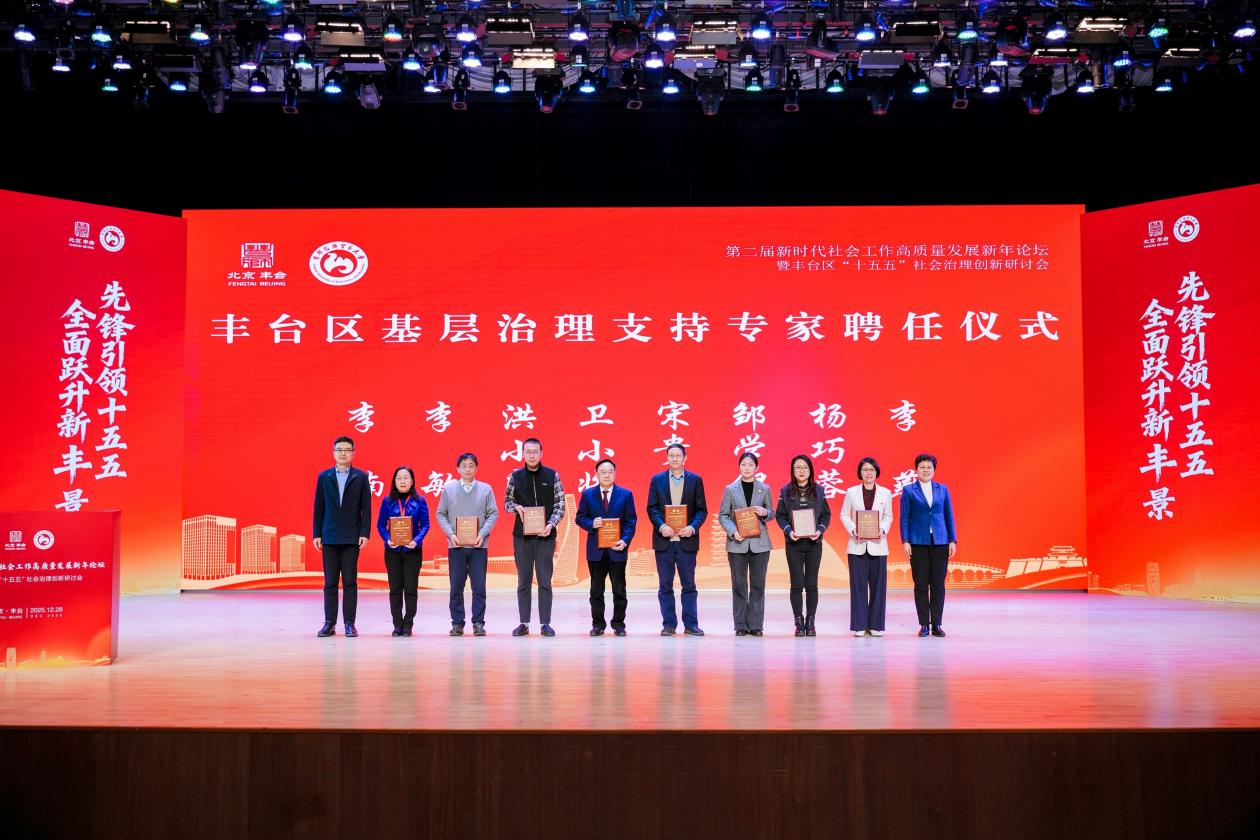 随后,刘颖和市委社会工作部办公室主任、二级巡视员张洪温为丰台区第二批基层治理支持专家颁发了聘书。受聘专家来自多所高校与社会实务领域,未来将深度参与丰台区社会治理相关调研、规划与咨询工作,进一步巩固“校地共建、协同育人”的合作机制,助力丰台区“十五五”社会治理体系优化与创新。
