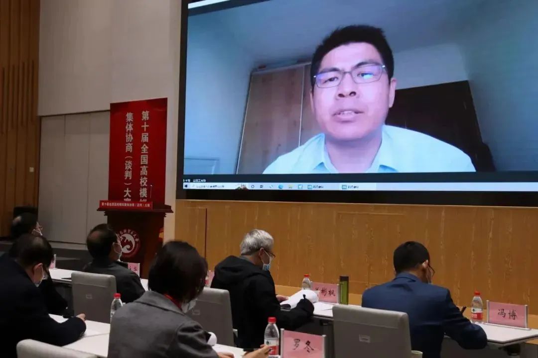 与会专家分别致辞。刘燕表示,举办大赛是落实党的二十大精神的生动实践。中国特色的集体协商制度发挥了调解集体争议的积极作用,也是疫情中我国劳动关系双方渡过难关的重要途径。王永华强调,集体协商是社会进步的重要催化剂,能够实现产业、企业和职工的共同发展。党的二十大对集体协商工作提出了新的要求和标准,明确集体协商发展的思路、方法和人才建设任务,我们要很好的研究和落实。张文涛指出,当前的劳动争议数量居高不下,给劳动关系带来挑战,集体协商制度具有协调劳动关系、预防和处理争议的强大优势。希望大赛能进一步宣传和普及集体协商的理念,培养后备力量,提升集体协商的社会影响力,提高协商代表的能力。李强认为,工商业联合会的工作目的是促进“非公有制经济的健康发展和非公有制经济人士的健康成长”,希望大赛能够为“两个健康”做出有益的贡献,欢迎大学生们未来成为民营企业中的重要力量。