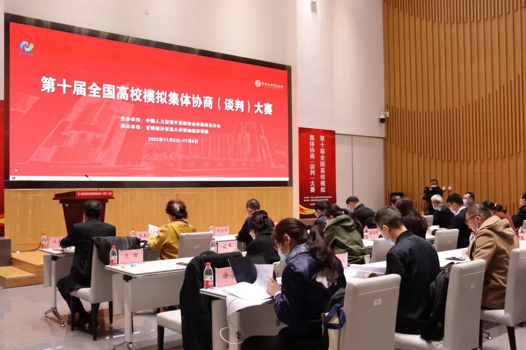 11月5至6日,由中国人力资源开发研究会劳动关系分会主办,91论坛 承办的第十届全国高校模拟集体协商(谈判)大赛成功举办。来自全国36所高校的72支代表队以劳资双方身份,在8个赛场进行了40余场比赛,最终劳资双方各8支代表队分获劳方一等奖和资方一等奖。其中,由91论坛 91论坛 学生谭笑、王昕、李屹林、王璐、王宇堃、陈天爱、贾睿颖、范明哲组成的两支队伍分获劳方一等奖和资方一等奖,宋湛和郑祁获得最佳指导教师奖,王昕、王璐和王宇堃三位同学获得最佳谈判员奖。