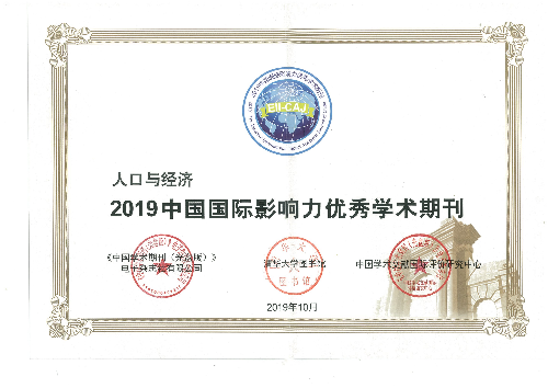 “2019中国学术期刊未来论坛”于2019年10月28-29日在北京会议中心召开,在中国科学文献计量评价中心发布的《世界学术期刊影响力指数WAJCI年报》中,《人口与经济》被遴选为“世界学术影响力Q2期刊”。