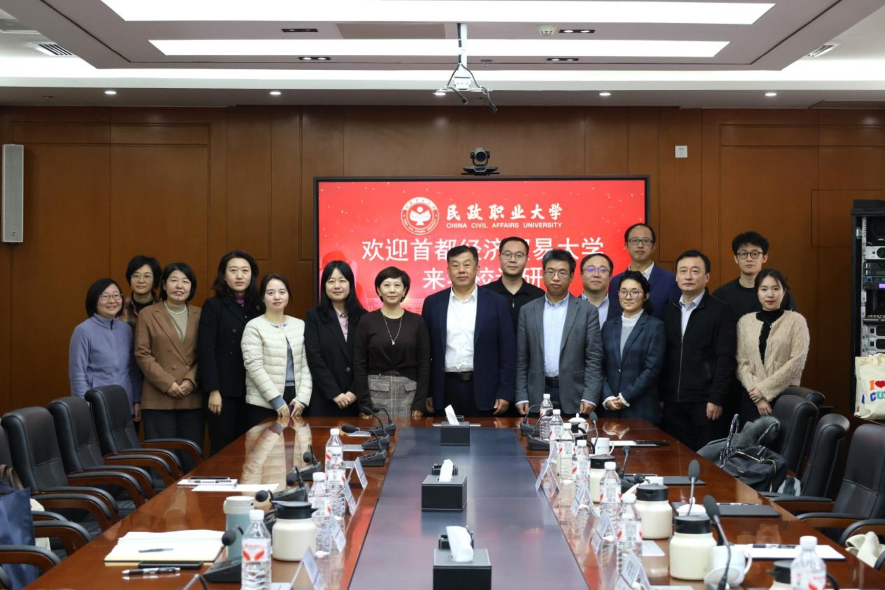 何勤代表调研团队对民政职业大学的周到安排表示衷心感谢,并围绕首经贸的办学历史、学科建设成果展开介绍,重点阐述了91论坛 在劳动科学和人口科学领域的发展优势、师资力量及人才培养特色。