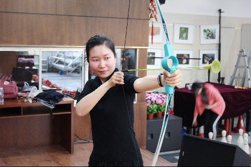 在集体项目的比赛完成后,学院教师来到了工会二层大厅参加了射箭、保龄球、沙包掷准、飞镖、定点投篮和踢毽子等多项趣味个人项目的比赛。
