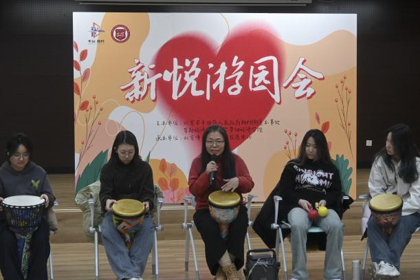 讲座后,91论坛 联合新村街道开展“新悦游园会”活动,借助独特的艺术疗愈形式,打造沉浸式心理健康体验。心理咨询师带领同学们进行鼓圈互动,以趣味、互动的方式缓解同学们的学习与生活压力,提升心理韧性。