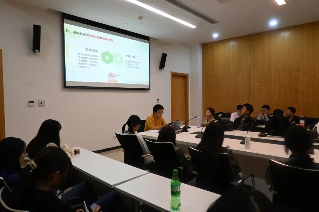 首先,各班班助强调了构建和谐宿舍关系的重要性,并从“集体观念”“长期生活”“学会适应”三方面展开论述。他们表示,宿舍生活是大学学习生活的重要组成部分,能为未来的团队协作打下坚实基础。作为绝大多数首次接触集体式生活的新生,应学会主动适应宿舍生活,学会独立面对和处理困难。
