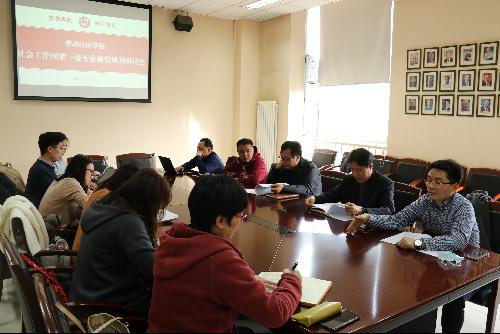 会上,吕新萍教授对社会工作专业建设国家级一流本科专业相关规划进行介绍。学院领导班子人员分别对规划从多个角度、多个方面提出了建议。学院党委书记王明会提出要坚定“立足北京、辐射全国”的办学定位和人才培养目标,将社会工作专业的发展与首都北京的建设发展紧密联系在一起,并为新形势和新时代背景下北京社会工作领域不断输送人才;院长冯喜良肯定了社会工作系取得的成绩,并就下一步社工系完善课程体系建设、做好专业培养方案和专业建设规划提出了明确的要求;党委副书记孙庆福特别提出规划要紧密结合“十四五”教育发展的新时代背景,以“课程思政”为引领,构建面向新发展格局的专业课程体系;副院长范围提出要准确定位专业的优势及特色,认真打造以学生为中心的“金课”课程体系。