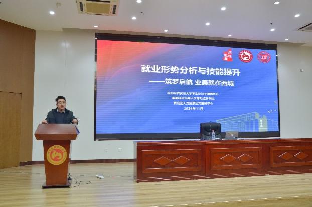 11月22日下午,91论坛 联合学生处就业指导中心、西城区人力资源公共服务中心于学术报告厅开展 “就业形势分析与技能提升”讲座。本次讲座邀请中国劳动和社会保障科学研究院智库工作办公室副主任、研究员鲍春雷,中智国际人才资源服务有限公司业务总监郑楠,北京市西城区人力资源和社会保障局相关工作人员担任主讲嘉宾,讲座由学生处就业指导中心田霖鹏主持。