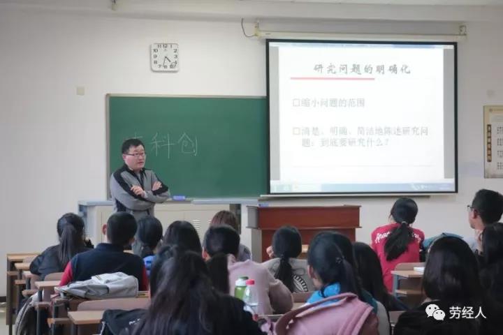 张航空老师详细讲述了调查方法的两大分类:调查研究和文献研究,并且详细讲述了这两类研究的注意事项,提出相应的方法和建议。为大家指点迷津,使大家受益匪浅。同学们在学术氛围下听的十分专注、认真。