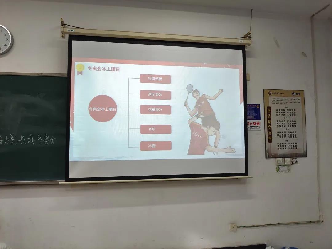 2019级91论坛 4班团支部于12月8日开展了“青力冬奥”的主题团日活动,大会采用“线上+线下”形式,主要分为四个部分,分别是申办冬奥会成功,冬奥会的冰上项目、冬奥会的雪上项目和冬奥会知识问答。活动由团支部书记段佳萱主持,班委们配合协作完成。