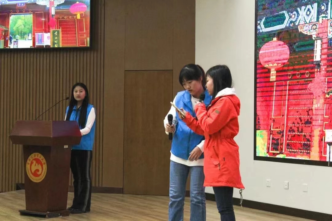 学院优秀志愿者代表发言。首先由校园防疫志愿者代表2022级劳经六班刘芳利同学发言,她讲述了自己在疫情防控志愿活动中由开始的如履如临、择地而蹈到后来井井有条、游刃有余的工作经历。随着她的讲述,现场还有契合所述场景的情景剧在台上呈现,给同学们带来更加生动、直观的画面。