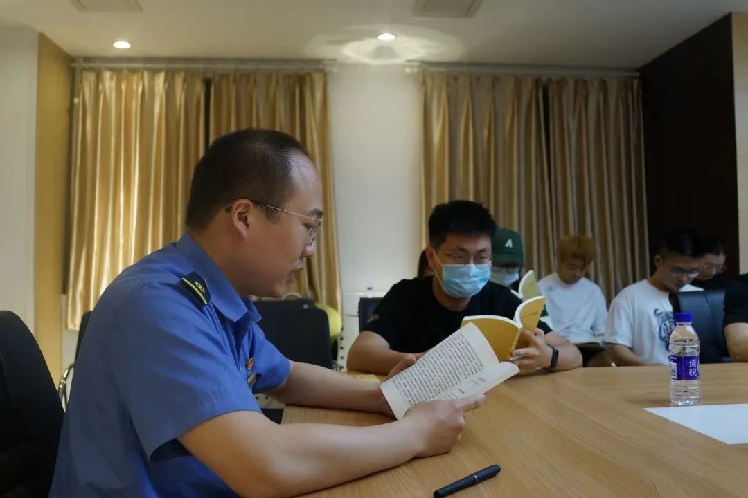 三方联学共读《习近平新时代中国特色社会主义思想学习纲要》选段——以新发展理念引领高质量发展,北京西站团委书记尹晖主持共读活动。活动采取集中领读学原文、代表发言谈体会、个人精读悟真理。尹晖对两校在五一期间为北京西站、丰台站提供志愿服务支持表示感谢,高度赞扬两校学子作为新时代青年有理想敢担当的思想觉悟。