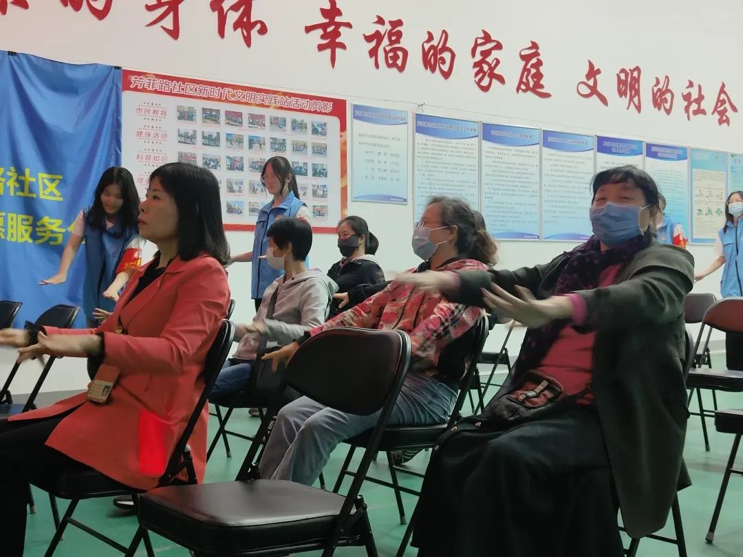 此次活动由学院22级劳经班团支部团员青年志愿者和学院分团委组织部、志愿服务部成员组织实施,芳菲路社区老年朋友们和社区工作者参与此次活动。他们在志愿者的指导下练习手指操,进一步了解老年保健知识。